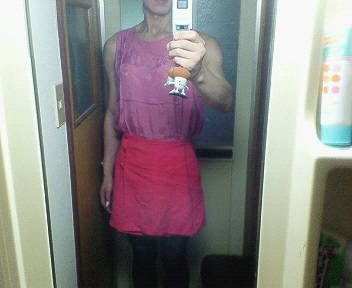 少し違うノースリーブのタンクトップとパッションピンクのミニスカート(これ巻きスタートなんです)