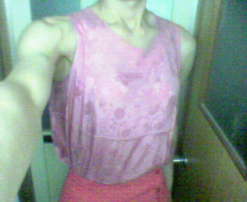 ピンクのロングスカートに合わせて、ピンクのタンクトップを着ました。