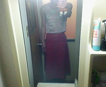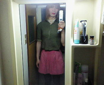 でトップスは先日、この日記をつけるきっかけをつかんだ時に着ていたモスグリーンのブラウスで、スカートは赤のチェックのミニスカートです