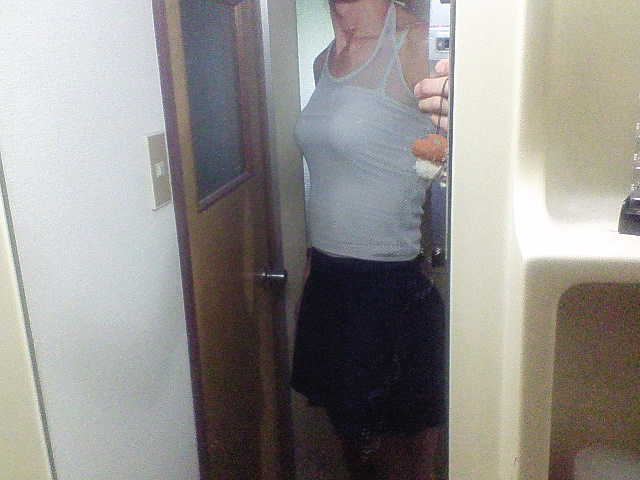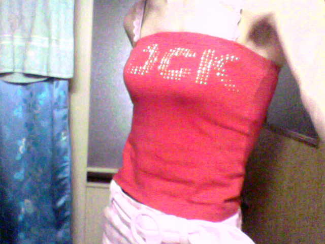 今日は、トップスにグレーのチューブトップ。